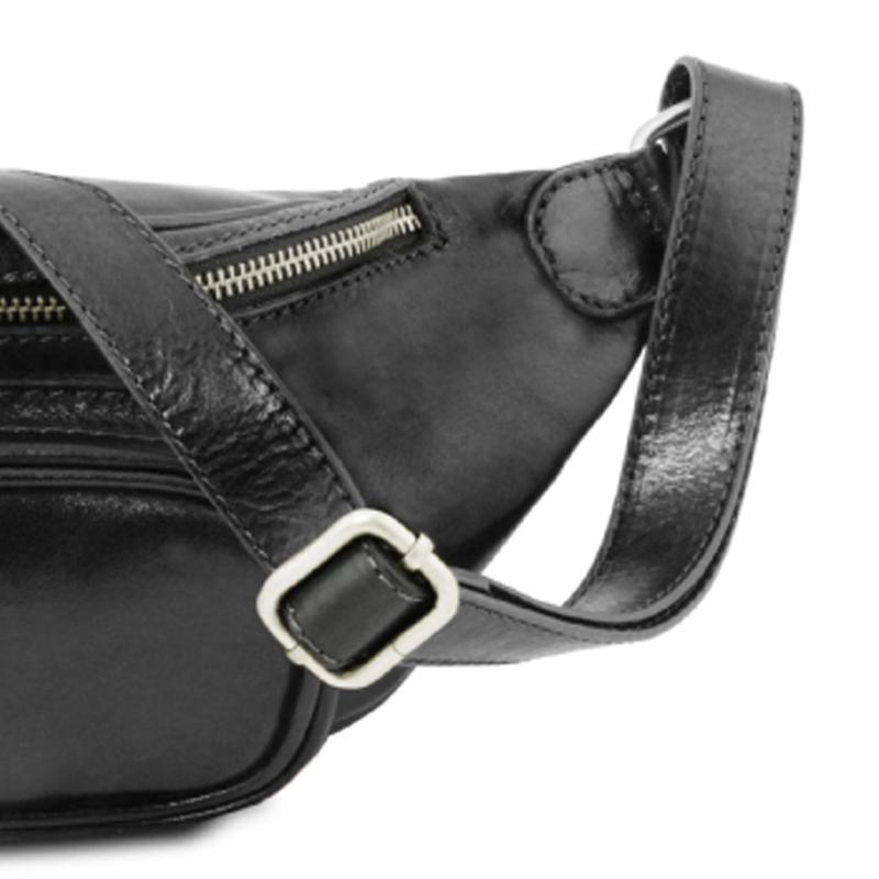 Το ανδρικό τσαντάκι μέσης, διαθέτει δερμάτινο ιμάντα μέσης μεταβλητού μήκους, 52-100cm με αγκράφα ζώνης, και μπορεί επίσης να φορεθεί και κρεμαστό στον ώμο.