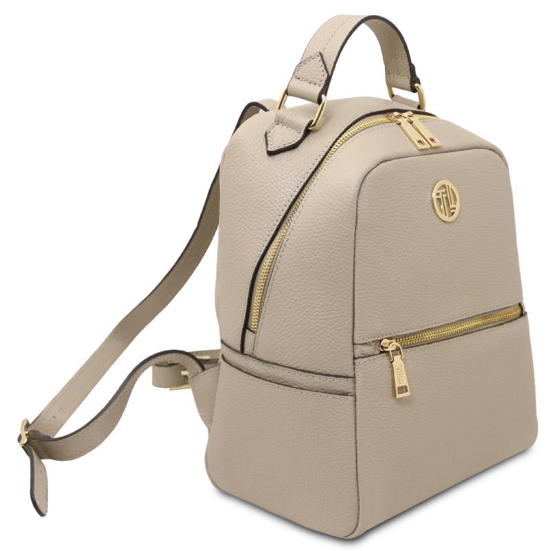 Η Prisma είναι μια τσάντα πλάτης μικρού μεγέθους και είναι κατασκευασμένη από εξαιρετικής ποιότητας μαλακό ιταλικό δέρμα Pebbled. Εξωτερικά στο μπροστινό της μέρος υπάρχει μια τσέπη με φερμουάρ αλλά και δυο μικρότερες ανοιχτού τύπου θήκες στα αριστερά και δεξιά της τσάντας. Η πρόσβαση στο κυρίως εσωτερικό της τσάντας γίνεται με διπλό φερμουάρ. Ο εσωτερικός της χώρος είναι ενιαίος, ευρύχωρος και διαθέτει μια θήκη με φερμουάρ και μια ακόμα ανοιχτού τύπου.