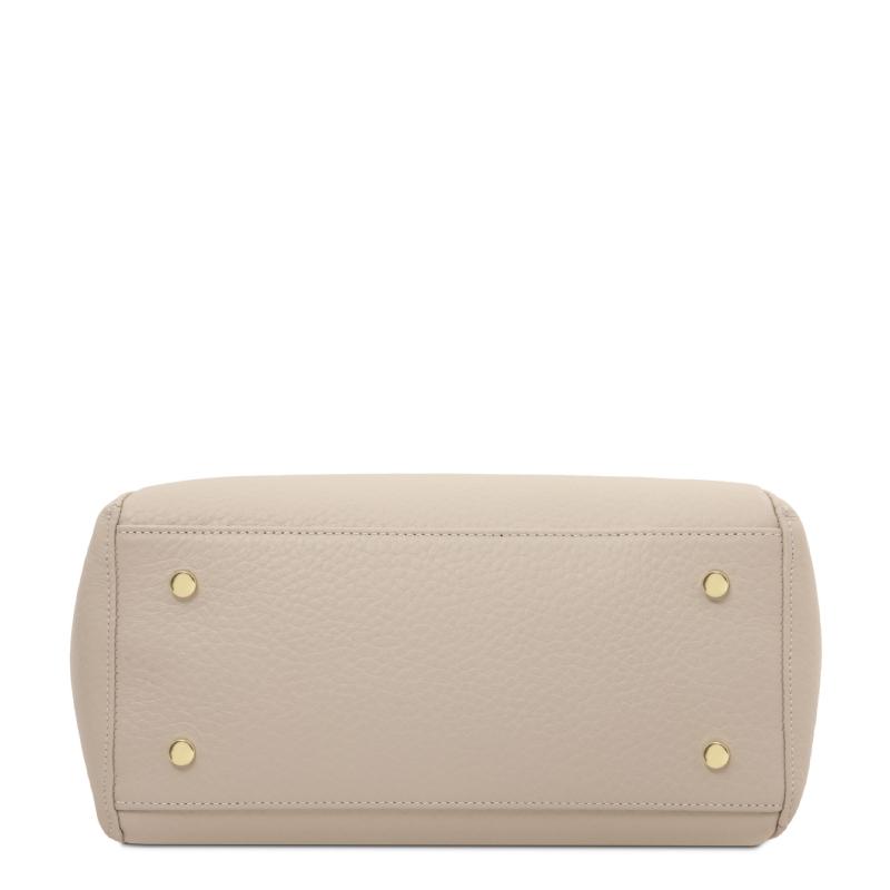 Η TL142508 διαθέτει ρυθμιζόμενες δερμάτινες λαβές ύψους 22,00 - 33,00 cm για άνετη εφαρμογή, ενώ τα μεταλλικά ποδαράκια στην βάση προστατεύουν την τσάντα. Οι χρυσές μεταλλικές λεπτομέρειες και το λογότυπο Tuscany Leather προσθέτουν μια πινελιά πολυτέλειας.