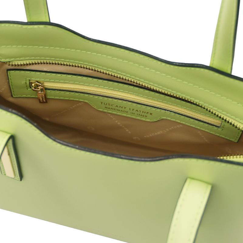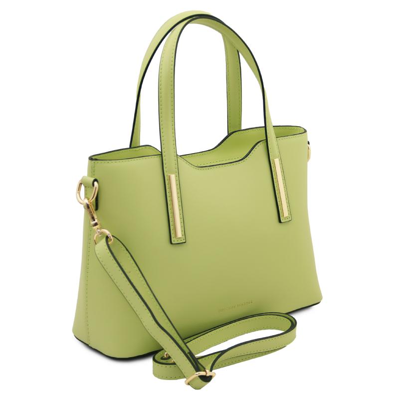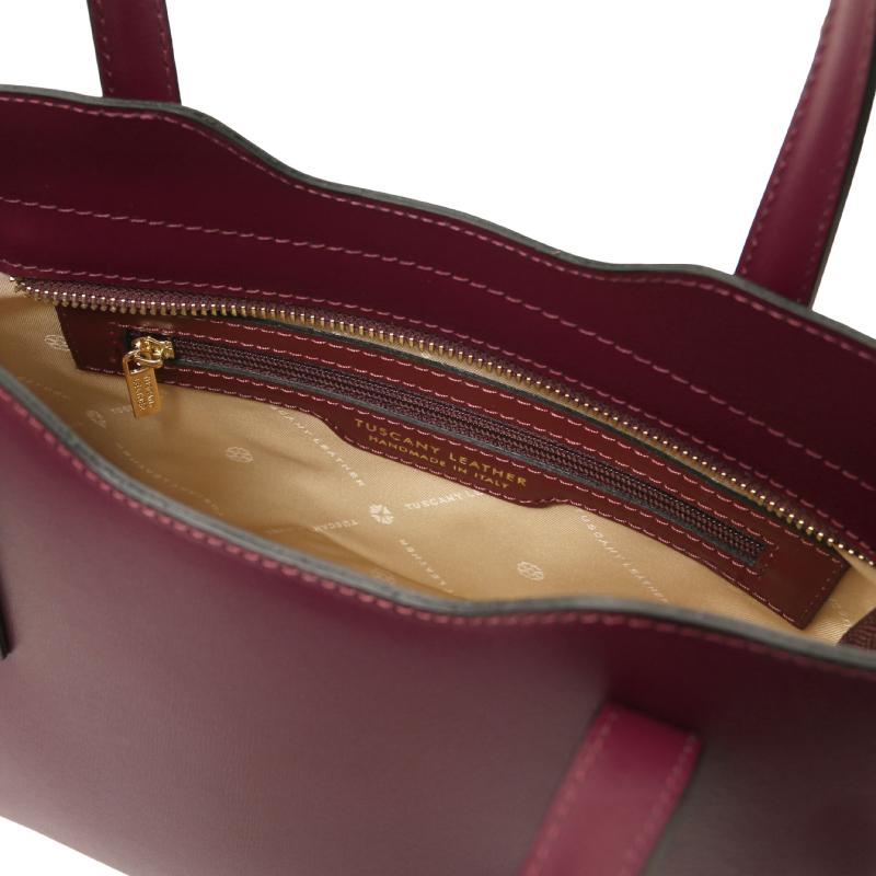 Η Olimpia S είναι γυναικεία τσάντα μεσαίου μεγέθους, είναι κατασκευασμένη από άριστης ποιότητας ιταλικό δέρμα, ενώ είναι άκαμπτης κατασκευής. Η πρόσβαση στο εσωτερικό της τσάντας γίνεται με φερμουάρ. Στο εσωτερικό θα βρείτε δύο ευρύχωρα διαμερίσματα ενώ και το διαχωριστικό αυτών ανοίγει με φερμουάρ δημιουργώντας μια ακόμα μεγάλη θήκη στο εσωτερικό της τσάντας. Το πρώτο διαμέρισμα διαθέτει 2 πολυχρηστικές θήκες ενώ το δεύτερο διαμέρισμα διαθέτει μια ακόμα θήκη με φερμουάρ.