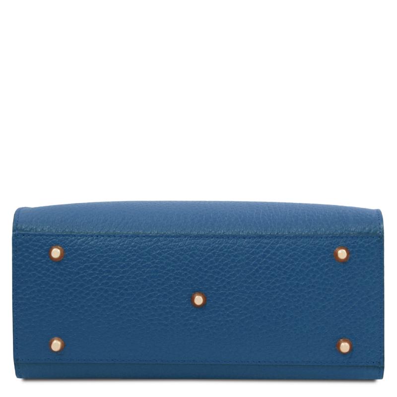 Η τσάντα κλείνει με φερμουάρ στο επάνω μέρος, προσφέροντας ασφάλεια κατά τη μεταφορά, ενώ η εσωτερική επένδυση από ανθεκτικό ύφασμα προστατεύει το περιεχόμενο. Στο κάτω μέρος διαθέτει μεταλλικά προστατευτικά ποδαράκια, τα οποία συμβάλλουν στη διατήρηση της τσάντας σε άριστη κατάσταση και προστατεύουν το δέρμα από φθορές κατά την επαφή με επιφάνειες.