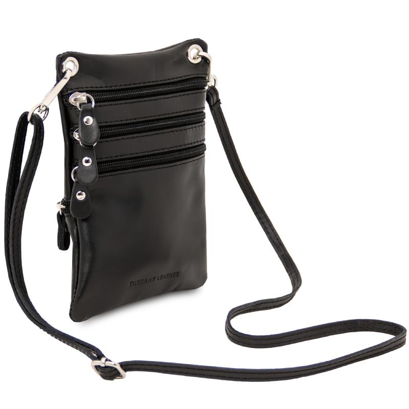 Είναι κατασκευασμένο από μαλακό ιταλικό δέρμα άριστης ποιότητας. Εξωτερικά υπάρχουν τρεις θήκες που ανοίγουν με φερμουάρ ενώ εσωτερικά έχει πολυεστερική επένδυση. Άλλη μια θήκη με φερμουάρ υπάρχει στην πίσω πλευρά του ώστε να μην σας λείπουν ποτέ οι διαθέσιμοι χώροι.