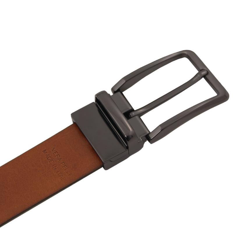 Πολυτελής, χειροποίητη, δερμάτινη ζώνη διπλής όψης με μεταλλική αγκράφα.