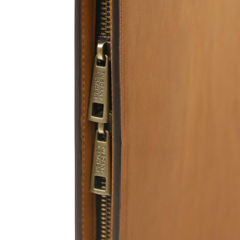 Ο πολυτελής δερμάτινος χαρτοφύλακας εγγράφων Tiberio συνδυάζει την αυθεντική ιταλική δεξιοτεχνία με έναν κομψό και λειτουργικό σχεδιασμό, ιδανικό για τον σύγχρονο επαγγελματία. Κατασκευασμένος από γνήσιο full grain δέρμα υψηλής ποιότητας, επεξεργασμένο με φυσικές φυτικές μεθόδους, ξεχωρίζει για τη φυσική υφή, την ανθεκτικότητα και τον διαχρονικό χαρακτήρα του. Η προσεγμένη χειροποίητη κατασκευή στην Ιταλία εγγυάται ένα προϊόν υψηλής αισθητικής που διατηρεί την αξία του μέσα στον χρόνο.