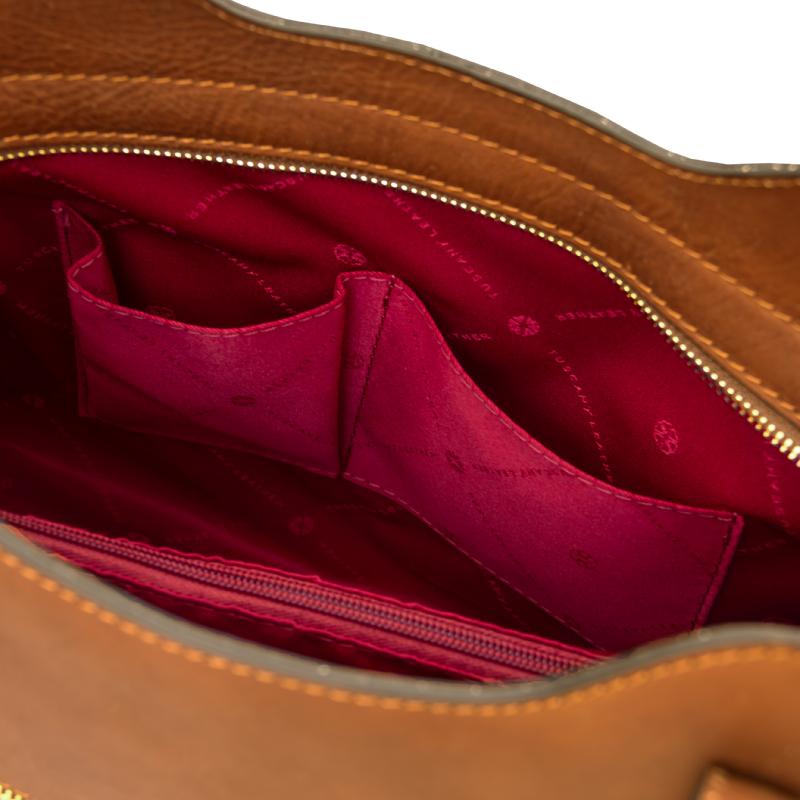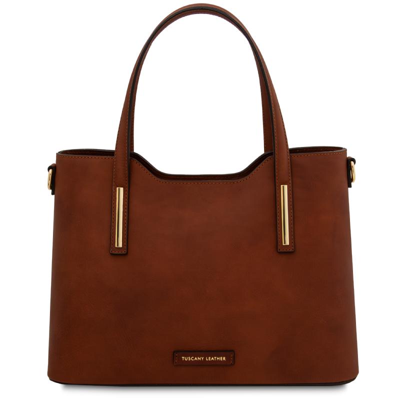 Η γυναικεία τσάντα Olimpia Leather Tote TL142561 της Tuscany Leather είναι μια κομψή και πρακτική επιλογή για καθημερινή χρήση, κατασκευασμένη από γνήσιο ιταλικό δέρμα υψηλής ποιότητας με λεία υφή. Διαθέτει σταθερή, δομημένη κατασκευή που διατηρεί το σχήμα της και προσφέρει προστασία στα προσωπικά αντικείμενα.
