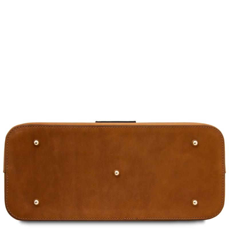 Διαθέτει δύο δερμάτινες χειρολαβές με ύψος 20cm και της επιτρέπουν να φορεθεί άνετα στον ώμο. Συνοδεύεται όμως και από δερμάτινο αποσπώμενο λουράκι μέγιστου μήκους 110cm για να φορεθεί και σαν κρεμαστή στον ώμο ή χιαστί στον κορμό.
