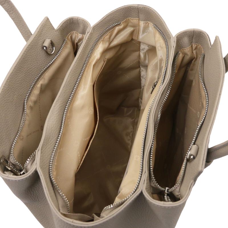 Στο εσωτερικό της, το κεντρικό διαμέρισμα διαθέτει δύο πολυλειτουργικές θήκες και μία τσέπη με φερμουάρ, για να κρατάτε τα μικροαντικείμενά σας οργανωμένα και εύκολα προσβάσιμα. Το πρακτικό και κομψό σχέδιο της τσάντας την καθιστά ιδανική για το γραφείο, τις βόλτες ή ακόμα και για μία επίσημη έξοδο.
