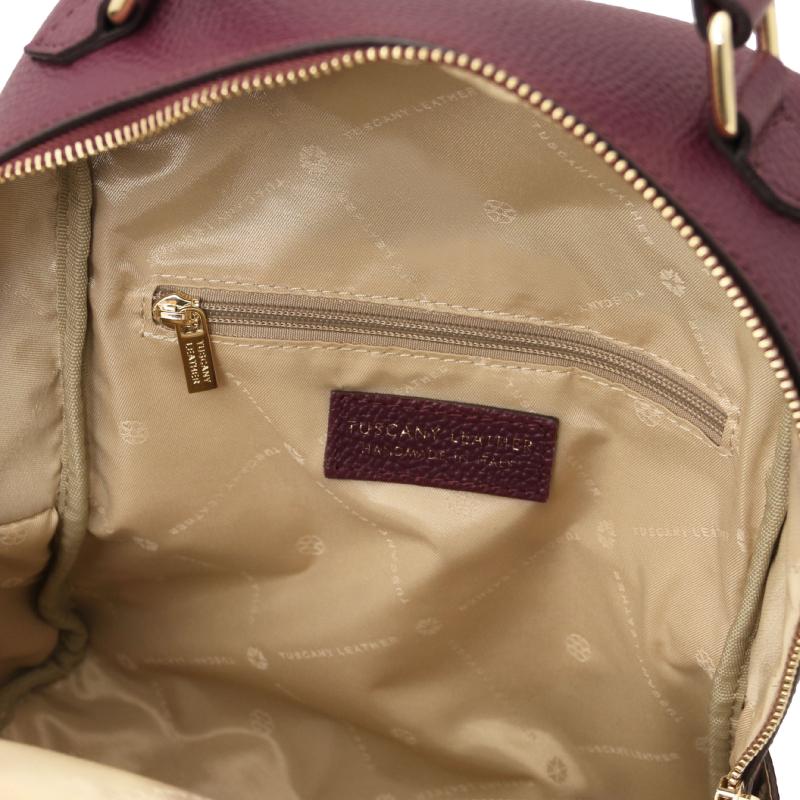 Η Prisma είναι μια τσάντα πλάτης μικρού μεγέθους και είναι κατασκευασμένη από εξαιρετικής ποιότητας μαλακό ιταλικό δέρμα Pebbled. Εξωτερικά στο μπροστινό της μέρος υπάρχει μια τσέπη με φερμουάρ αλλά και δυο μικρότερες ανοιχτού τύπου θήκες στα αριστερά και δεξιά της τσάντας. Η πρόσβαση στο κυρίως εσωτερικό της τσάντας γίνεται με διπλό φερμουάρ. Ο εσωτερικός της χώρος είναι ενιαίος, ευρύχωρος και διαθέτει μια θήκη με φερμουάρ και μια ακόμα ανοιχτού τύπου.