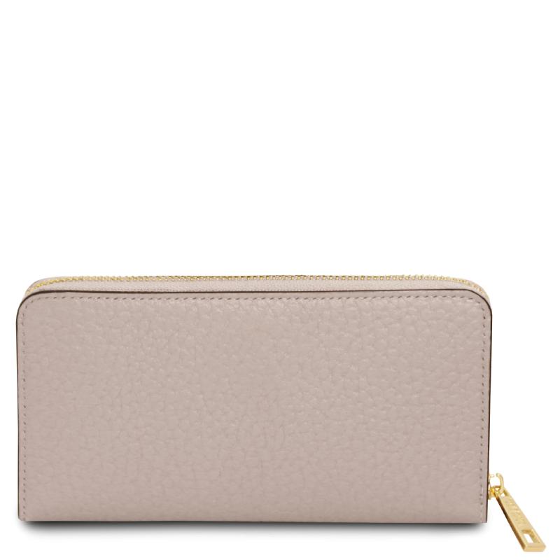Αριστοκρατικό και minimal, το δερμάτινο γυναικείο πορτοφόλι Financier II είναι κατασκευασμένο από χονδρόκκοκο βοτσαλωτό ιταλικό δέρμα.