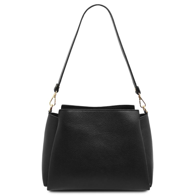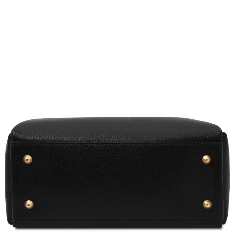 Η τσάντα διαθέτει 2 δερμάτινα λουράκια ώμου. Ένα σταθερού μήκους και ύψους 27,50 εκατοστών και ένα ακόμα ρυθμιζόμενο λουράκι ώμου μήκους 105 - 122 εκατοστών. Οι μεταλλικές της λεπτομέρειες είναι στο χρώμα του χρυσού και στο κάτω μέρος της υπάρχουν ποδαράκια για στήριξη και προστασία.
