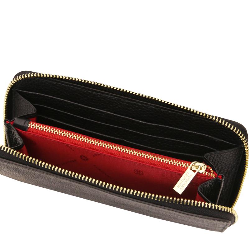Η πρόσβαση στο εσωτερικό του γίνεται με φερμουάρ. Στο εσωτερικό του, υπάρχουν 2 διαμερίσματα ενώ και το χώρισμα των διαμερισμάτων αυτών διαθέτει φερμουάρ και λειτουργεί ως θήκη κερμάτων. Τα δύο διαμερίσματα διαθέτουν την ίδια σχεδίαση με το καθένα από αυτά να διαθέτει 4 θήκες για πιστωτικές και επαγγελματικές κάρτες και μια ακόμα μεγάλη θήκη για χαρτονομίσματα, έγγραφα και ότι άλλο χρειάζεται να έχετε μαζί σας.