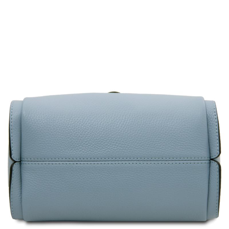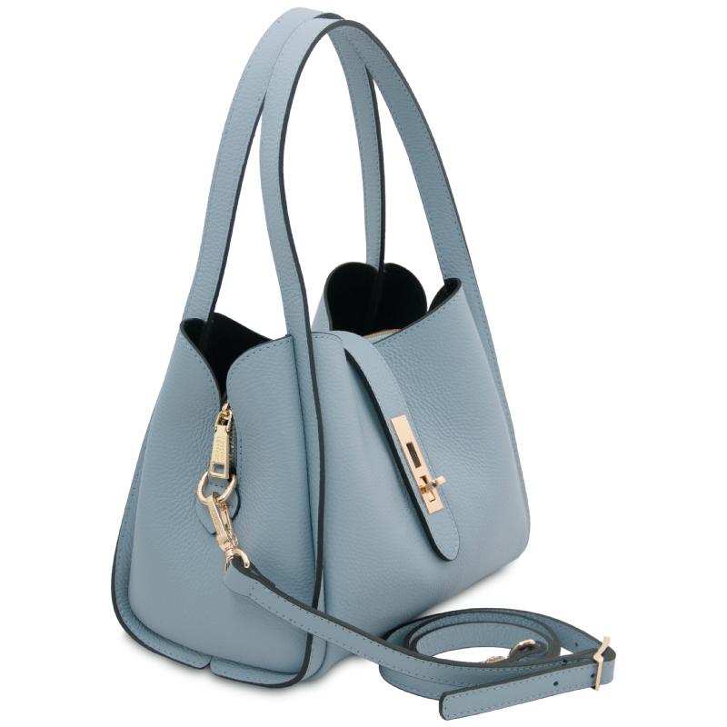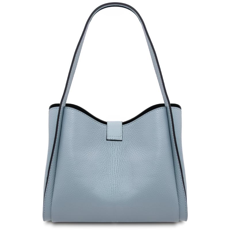 Η γυναικεία τσάντα Soave είναι μεσαίου μεγέθους, κατασκευασμένη από εξαιρετικής ποιότητας μαλακό ιταλικό δέρμα pebbled και είναι ημιάκαμπτης κατασκευής. Η πρόσβαση στο εσωτερικό της τσάντας γίνεται με μεταλλική twist κλειδαριά 2 θέσεων. Το εσωτερικό διαθέτει τρία διαμερίσματα, με το διαχωριστικό των οποίων, να αποτελεί μια μεγάλη θήκη με φερμουάρ. Εντός της υπάρχει μια ακόμα μικρότερη τσέπη με φερμουάρ.