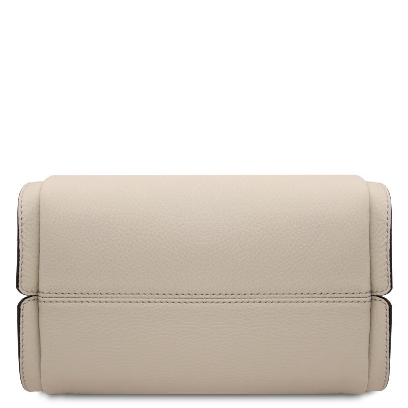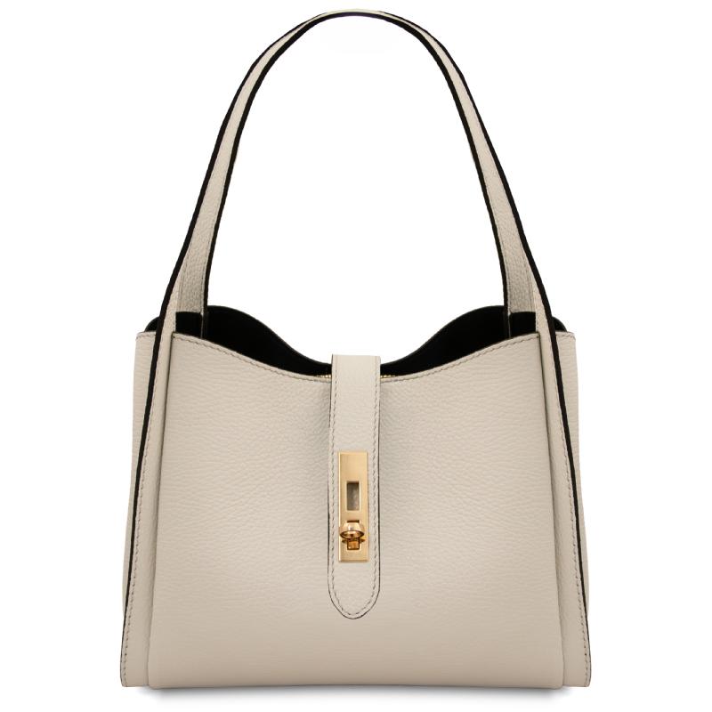 Η γυναικεία τσάντα Soave είναι μεσαίου μεγέθους, κατασκευασμένη από εξαιρετικής ποιότητας μαλακό ιταλικό δέρμα pebbled και είναι ημιάκαμπτης κατασκευής. Η πρόσβαση στο εσωτερικό της τσάντας γίνεται με μεταλλική twist κλειδαριά 2 θέσεων. Το εσωτερικό διαθέτει τρία διαμερίσματα, με το διαχωριστικό των οποίων, να αποτελεί μια μεγάλη θήκη με φερμουάρ. Εντός της υπάρχει μια ακόμα μικρότερη τσέπη με φερμουάρ.
